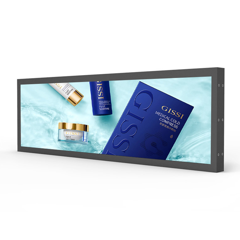 LCD条形显示屏内部搭载工业级逻辑板,支持横屏或竖屏的强制旋转。其核心在于分辨率自适应技术,能够将输入的16:9标准信号精准映射到细长条形的物理分辨率上,避免图像拉伸变形。
